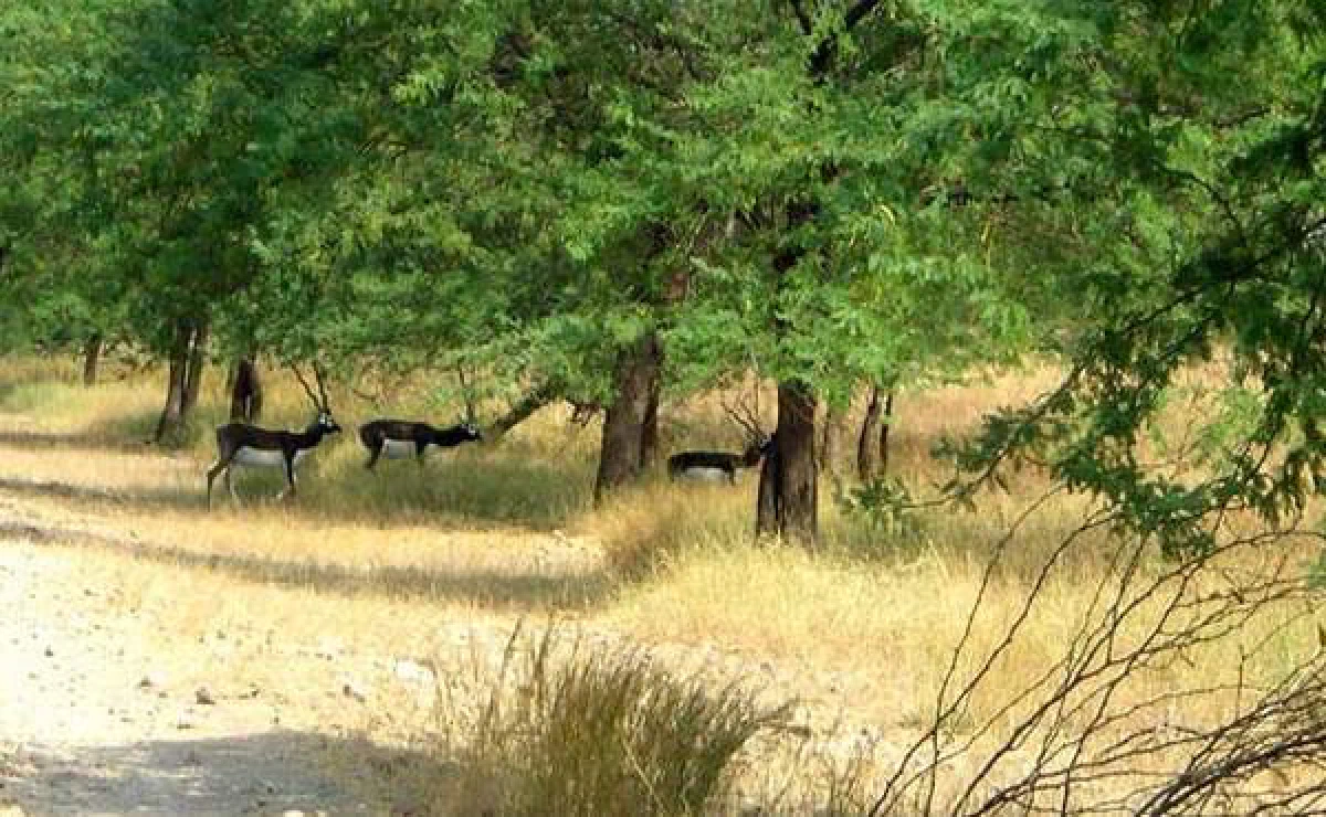 The principal attraction of the park is the massive population, the largest in the country, of blackbuck, the handsome Indian antelope, seen here in numbers running into thousands.