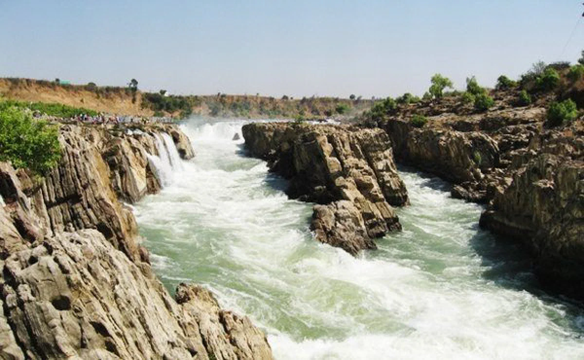 The Marble Rocks are 22 km west of Jabalpur. These white rocks rise to 30m on either side of the Narmada River and in moonlight produce a magical effect.