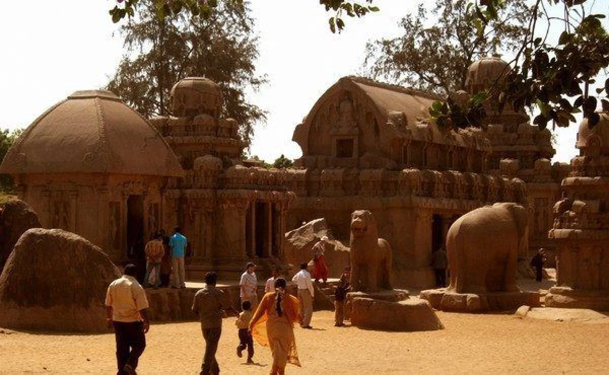 The famous shore temple of Mamallapuram stands on the water's edge. Closeby are early rock-cut temples, excavated from the hillside near the centre of the village. They have large carved panels depicting stories from Indian mythology. Several man-made caves are scattered through the area too. Then there are the rathas, "chariots", carved in situ from single boulders, to resemble temples or the chariots used in temple processions.Also worth seeing is the smaller but equally spectacular Krishna’s Butterball, a precariously perched yet curiously unmovable boulder. The intricately carved bas relief of the descent of the Ganges with its crevice catching and directing the flow of rain water to reproduce this important religious event.